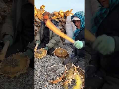 ¡Así recolectan semillas de girasol a mano!😱#shorts