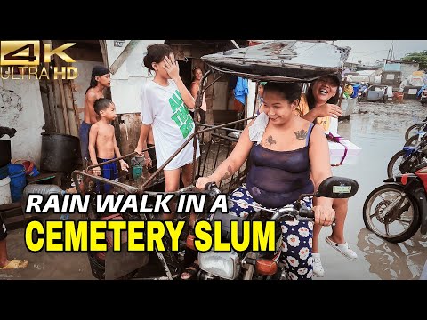 Rain Walk Through a Cemetery Slum in Cavite City Philippines [4K]
