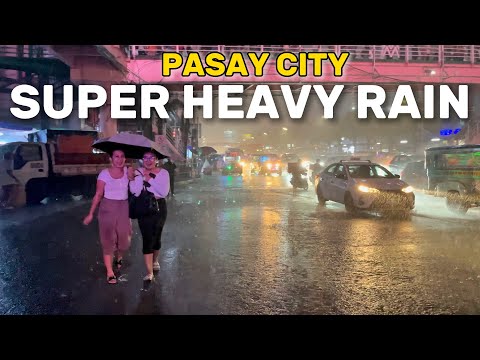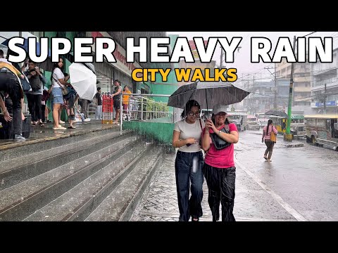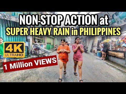 REAL LIFE SCENES at SUPER HEAVY RAIN in Philippines - Walking Tour [4K] 🇵ðŸ‡