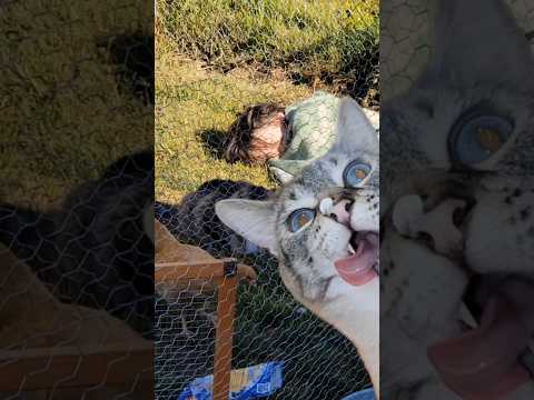 There's a reason his nickname is Chicken 🐔🐈 #funny #animals #shortsfeed