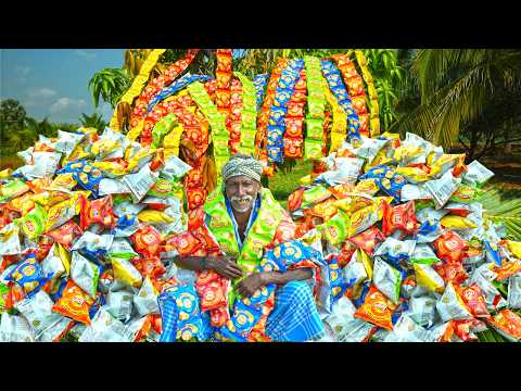 1000 PACKET LAYS | Indian Street Food | Amazing New Recipe | Village Grandpa Making Lays Chips With