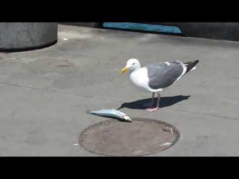"Gaviota devorando un pez gigante. ¡Impresionante escena de la naturaleza!" #pez #gaviota #playa
