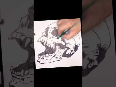 Ink pen skull drawing that's actually insane #artcommunity #drawing #shorts
