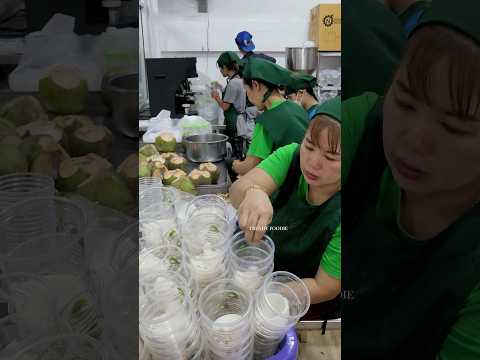 Coconut water production process at a Thai coconut factory!!!