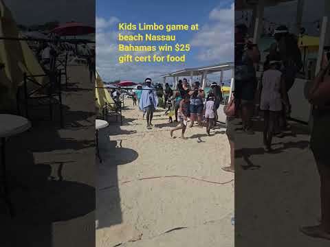 Nassau Bahamas kids limbo game at beach got free sun visor and Lemonade winner got $25 gift card