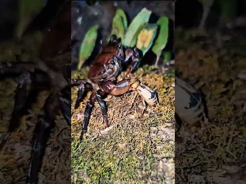 Giant Red Mountain Crab Attacks Bombardier Beetle 😱😱 #bombardier #crab #animals #short
