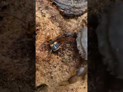 Bombardier Beetle vs Crab #animalfight #beetledefense