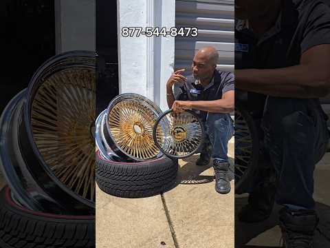 Real 24k Gold Wire Wheels vs Titanium gold. See the difference. 877-544-8473 Rims and tire packages