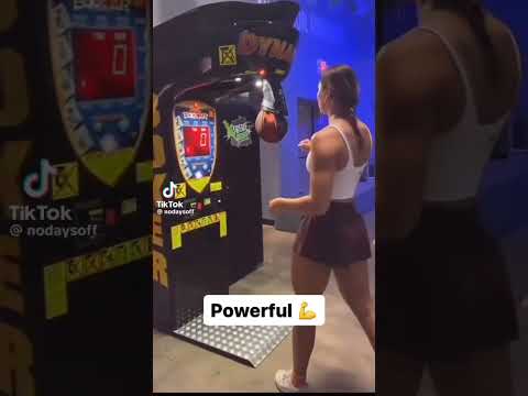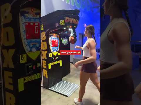 Boxing game. Girl got skills. She packing heat. Punching machine