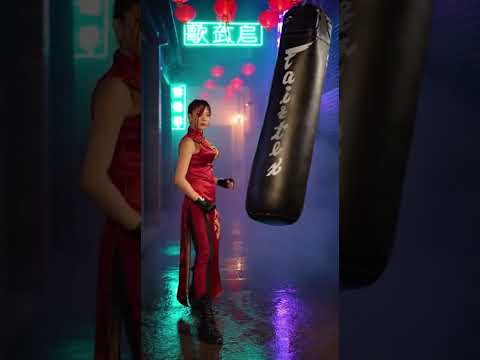 Kung Fu Girl Practicing the Punching Bag - Very Fast and Strong