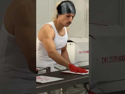 Nouveau défi 24h pour Rilès. L’artiste pose sa main imbibée de peinture sur des CD à la chaine.