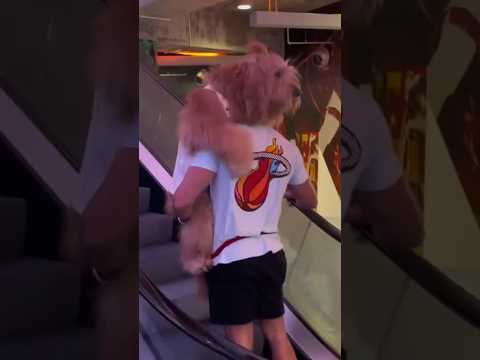 How I carry my dog on escalators! #goldendoodle #dogdad #escalator