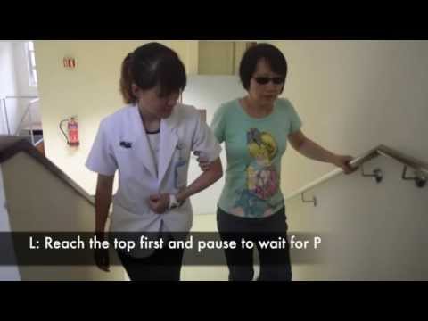How to guide a person with a vision impairment downstairs #GuideDogsUK #SightedGuideTraining