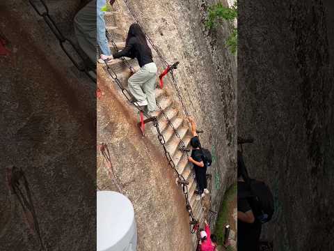 Climbing Huashan Mountain the super steep stairs 夜登华山超陡楼梯太惊人#hiking #rockclimbing #naturelovers