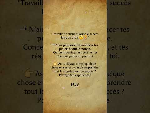 Travaille en silence et laisse ton succès parler