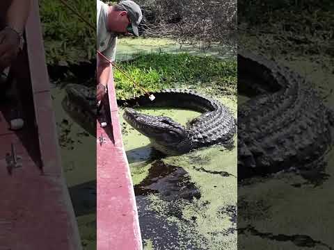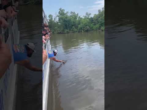 Tour guide feeds alligator at Louisiana Swamp Tour #alligator #louisiana