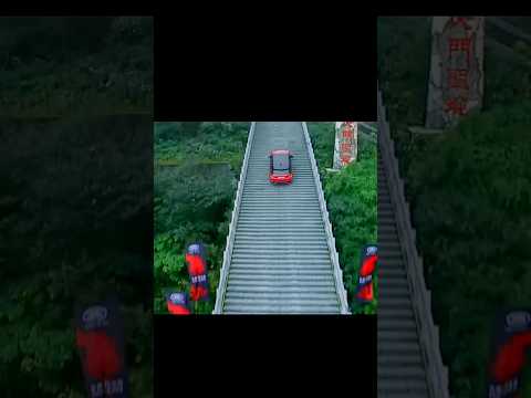 other car vs Range rover 999 steps. Range Rover Sport on Tianmen Mountain, China