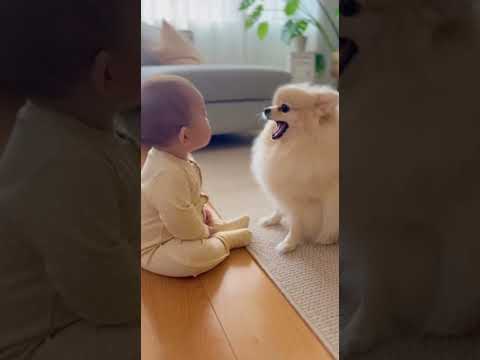 Baby plays with #dog #baby #dogshorts #babyshorts #dogcomfort