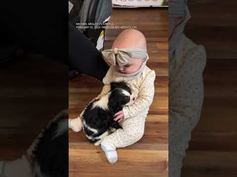 Baby and puppy become instant best friends