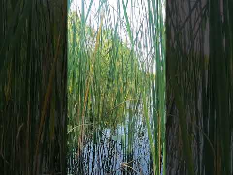 Kayak parked among reeds moving in the wind - the calm of nature