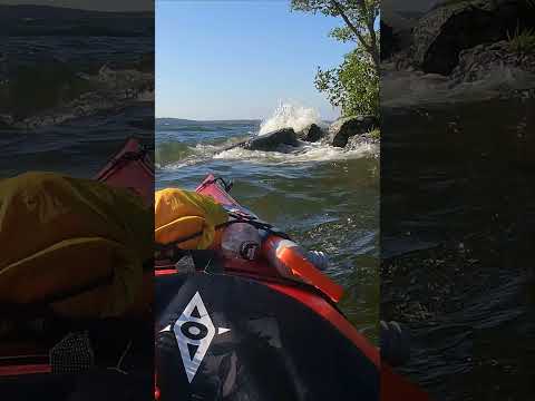 Waves crashing against island - moments from 50 km day paddle with Point 65 kayak from Kayakomat