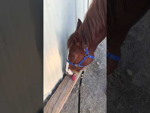 Sorrel Gelding Scratching A Piece of Wood With A Curry Comb | Proceeds to Scratch His Leg #horses