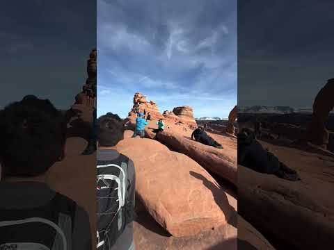 Delicate Arch Utah! The backside of the arch drops off the cliff 😅#travelfamily #utah #moabutah