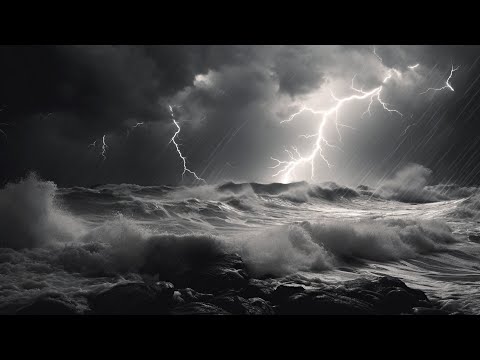 Stürmischer Ozean: Starker Regen mit Meeresrauschen und Donner (5 Stunden)