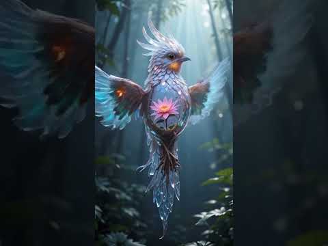Crystal Caged Bird With Blooming Core #cute #birds #ai #nature #funny #animals #viral #love #shorts