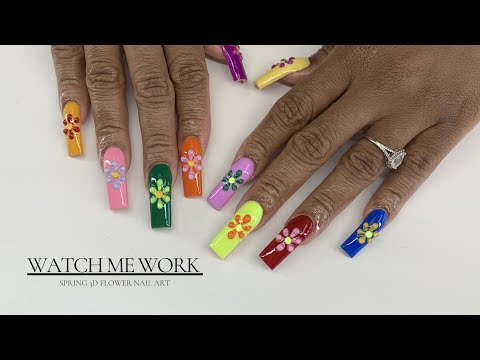 3D Flower Nail Art Tutorial | Colorful Spring Acrylic Nails π π½