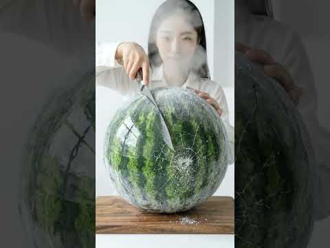 Giant Frozen Watermelon Cut… Perfect Crunch ASMR 💙