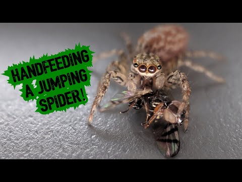 Handfeeding a cute jumping spider #shorts