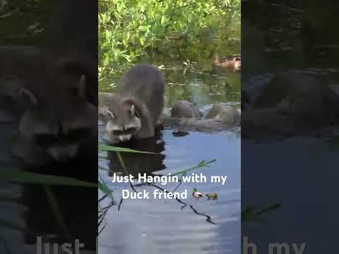 Raccoon and Duck Are Friends💥 #shorts #nature #raccoons #duck #wildlife #animals