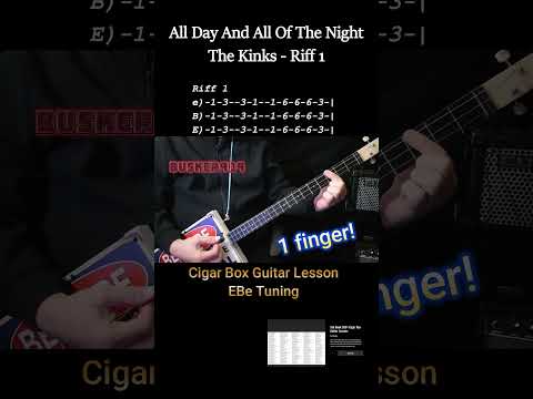 All Day And All Of The Night by The Kinks - 1 Finger - (No Chat) Cigar Box Guitar Lesson With Tab