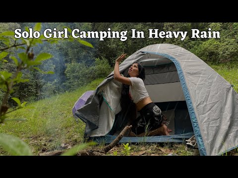 GIRL SOLO OVERNIGHT CAMPING IN THE RAIN-RELAXING IN THE TENT WITH THE SOUND OF NATURE-PART 2-ASMR