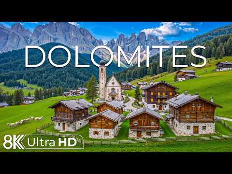 Dolomites Italy 8K | Jagged Peaks, Alpine Lakes & Meadows Beneath Vast Golden Evening Light Skies