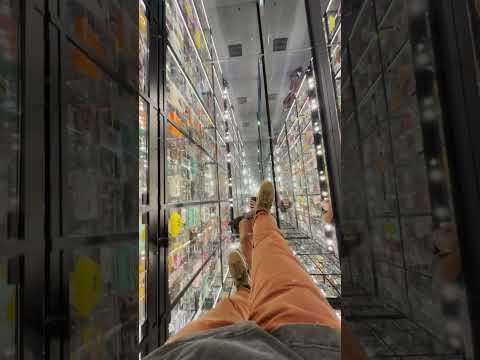 Abstract interior reflections on ceiling and walls showcasing infinite mirrored space