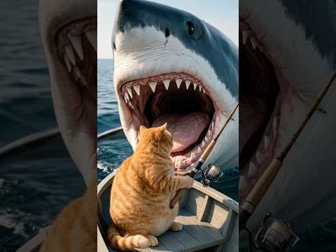 Cat vs Shark?! Fishing Trip Gone VERY Wrong 😂🐱🦈 #shorts