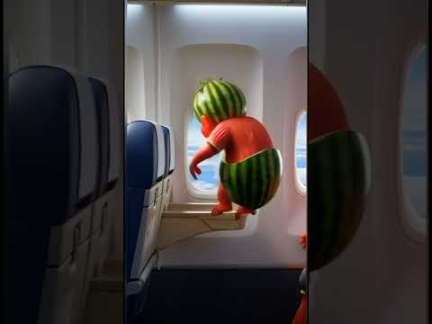 Watermelon Human Thew His Baby Out of the airplane window!#sad#Fruits#Scary#Watermelon#ai#animation