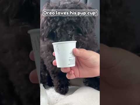 Oreo loves his first Pup Cup! #cute #cutedogs #dog #starbucks
