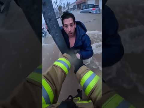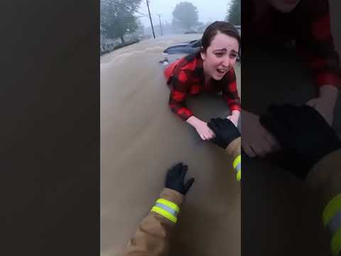 Firefighter Hero Saves Flood Victim!