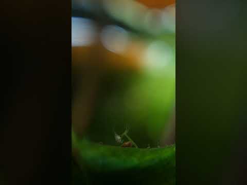A green hydra and a copepod #aquarium #hydra #copepod #microfauna #nature