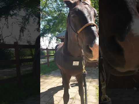 Gupsy being a wonderful helper while we figure out the ProSix Bodywrap #rescuehorse #bodywrap