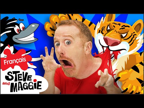 Les animaux du zoo qui font peur, une histoire pour enfants avec Steve et Maggie Français