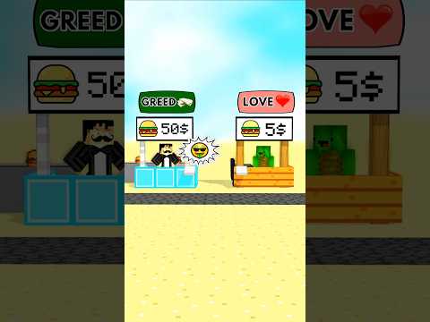 JJ and Mikey GREED VS LOVE selling Hamburger - Maizen Minecraft Animation #maizen #minecraft #shorts