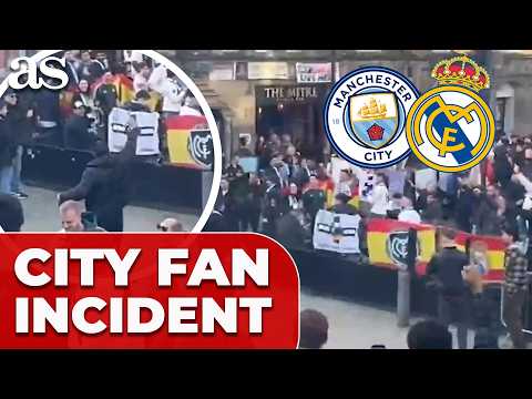 Tensions rise as MANCHESTER CITY fan wanders through REAL MADRID pre-game gathering