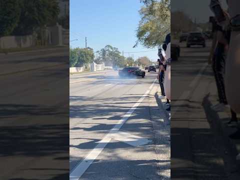 Challenger leaves car meet and almost crashes!!SUBSCRIBE ‼️ #cars #fyp #fl #mopar #hellcat #crash