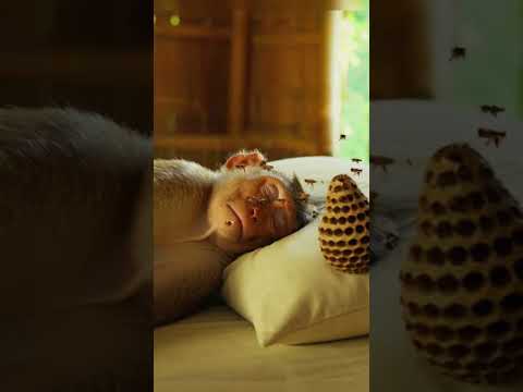 Chaos Moment—Baby Monkey Uses Beehive to Troll Mom! #babymonkey #monkeyprank #funnyshorts
