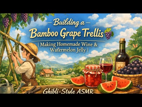 🍇 Building a Bamboo Grape Trellis – Homemade Grape Wine & Watermelon Jelly | Ghibli inspired ASMR