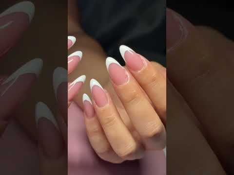 Classic white French tips 🫧#almondnails #almondfrenchtips #almondfrenchtipnails #almondnailinspo